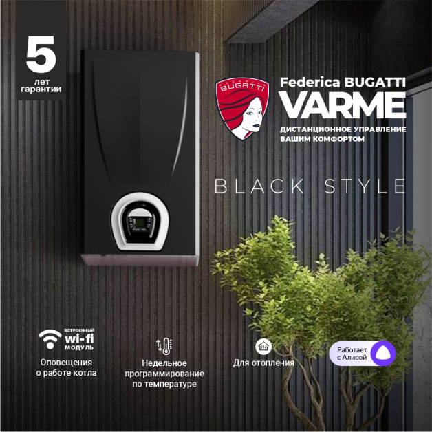 G24F7P | Котел газовый настенный Federica Bugatti Varme -24 кВт с дисплеем, с модулем Wi-Fi (Черный) (двухконтурный) | 73454р. |