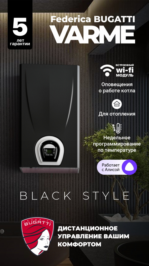 G24F6 | Котел газовый настенный Federica Bugatti Varme -24 кВт с дисплеем, Черный (Одноконтурный) | 66625р. |
