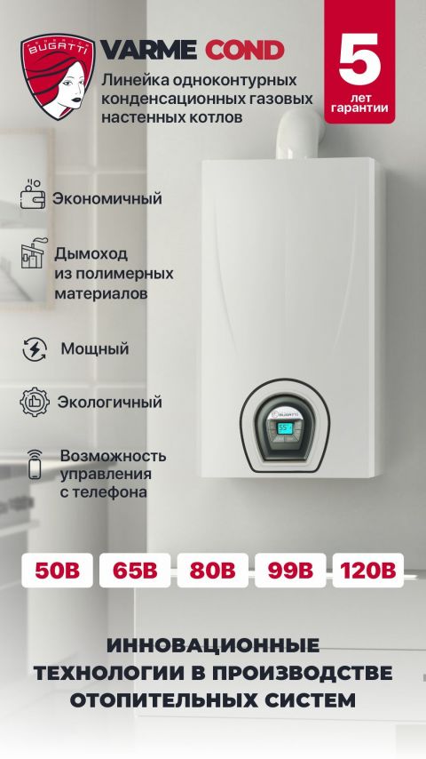 C50F3 | Котел газовый настенный Federica Bugatti Varme Cond -50 кВт с дисплеем, Черный (Одноконтурный) | 251753р. |