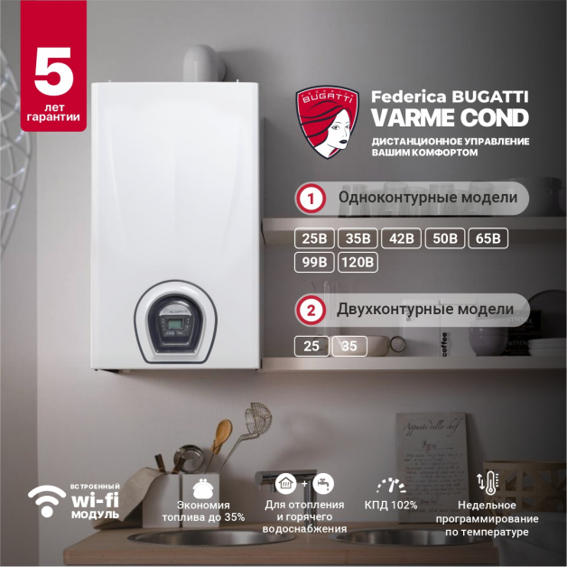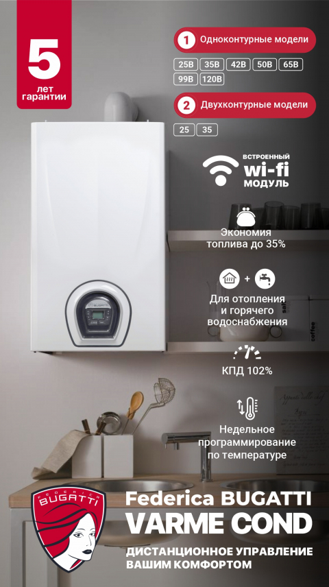 C99F3 | Котел газовый настенный Federica Bugatti Varme Cond 99 кВт с дисплеем, Черный (Одноконтурный) | 432945р. |
